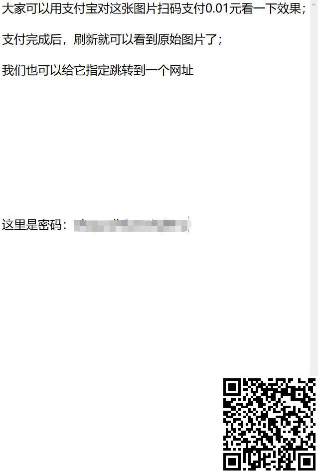 您可以自行上传两张图片,A照片是原始图片,B照片是用户看到的图片,用户在扫码支付后就可以看到A照片。